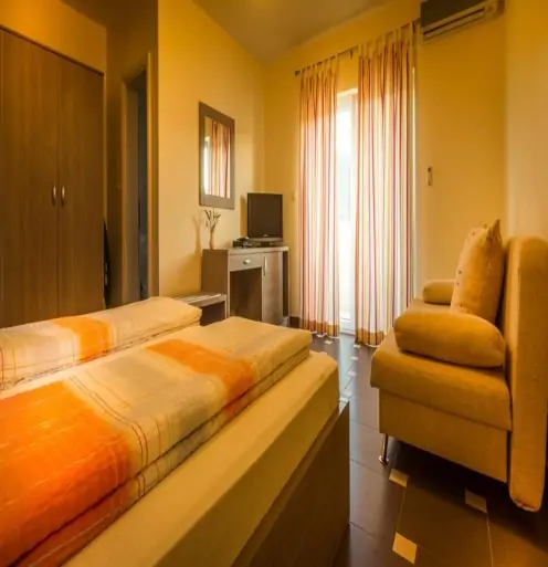 تتميز جميع الغرف بأنها مكيفة، وتحتوي على شرفة مؤثثة توفر إطلالات على البحر، ويتوفر في جميع الغرف تلفزيون بشاشة مسطحة مع قنوات فضائية وثلاجة، وتحتوي الحمامات الخاصة على دش.