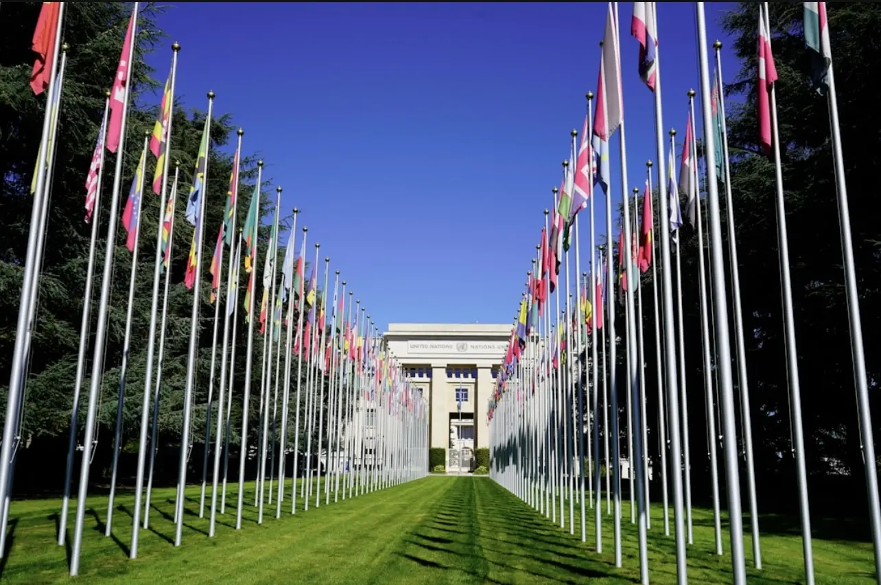 تم بناء قصر الأمم بين عامي 1929 و1936 ليكون مقرًا لجامعة الأمم. وقد خدم كمقر لمكتب الأمم المتحدة في جنيف منذ عام 1946 بعد توقيع اتفاقية للمقر بين الأمين العام للأمم المتحدة والسلطات السويسرية، على الرغم من عدم انضمام سويسرا إلى الأمم المتحدة حتى عام 2002.